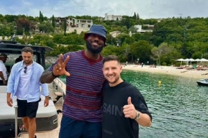 本周二晚上,詹姆斯和友人在科孚岛北部的一家餐厅用餐,期间与多位球迷合影。随后,该媒体还晒出一段詹姆斯一行人离开科孚岛回到游艇上的视频。